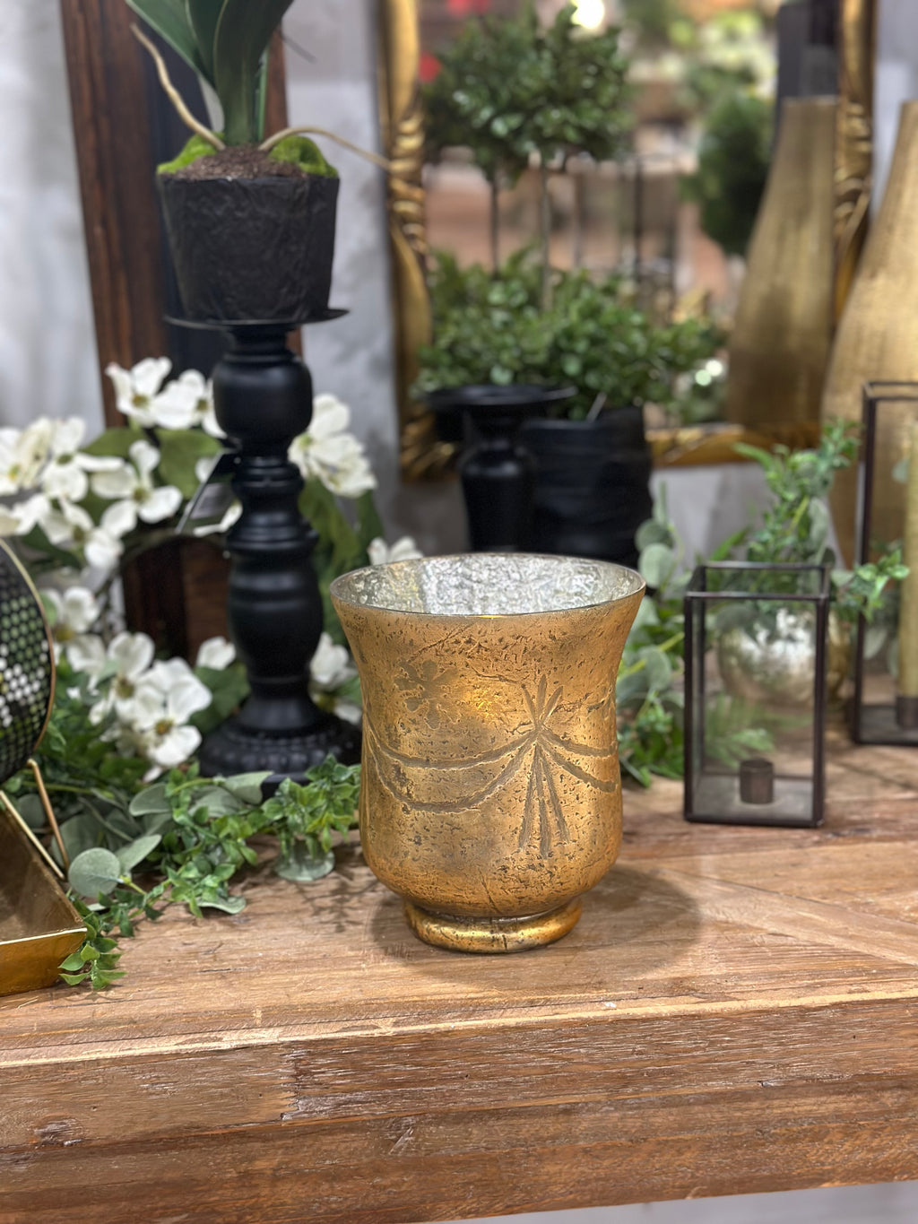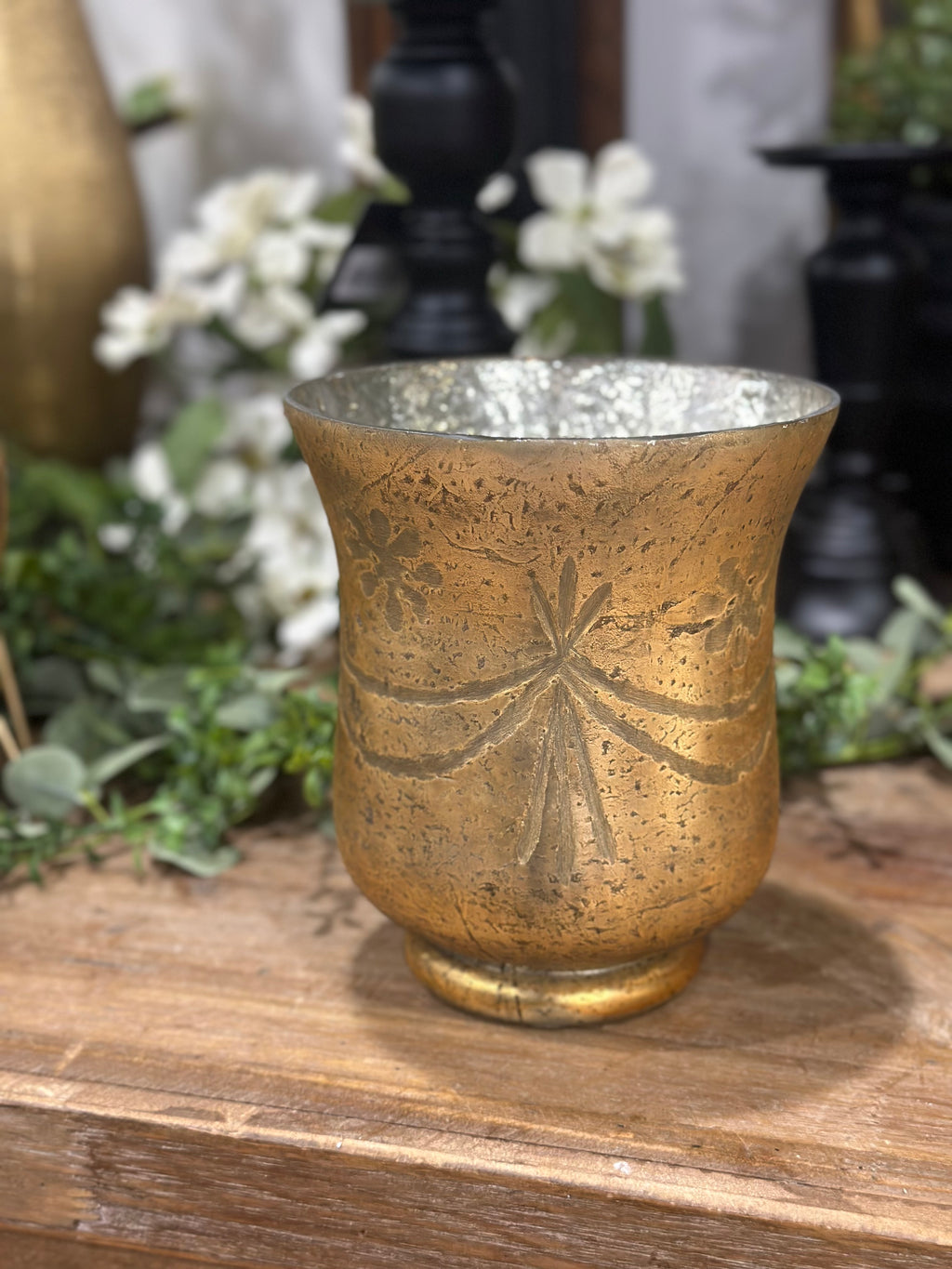 Elevate your home decor with our 8" Antique Bronze Etched Pattern Hurricane Candle Holder. This luxurious piece features intricate etched patterns and a gorgeous antique bronze finish, adding elegance and sophistication to any room. Create a warm ambiance and a touch of class with this premium candle holder.