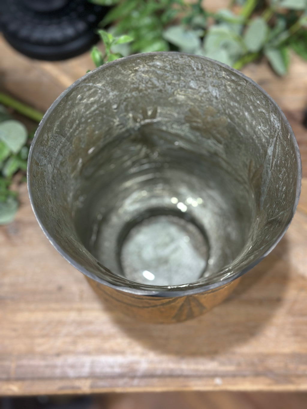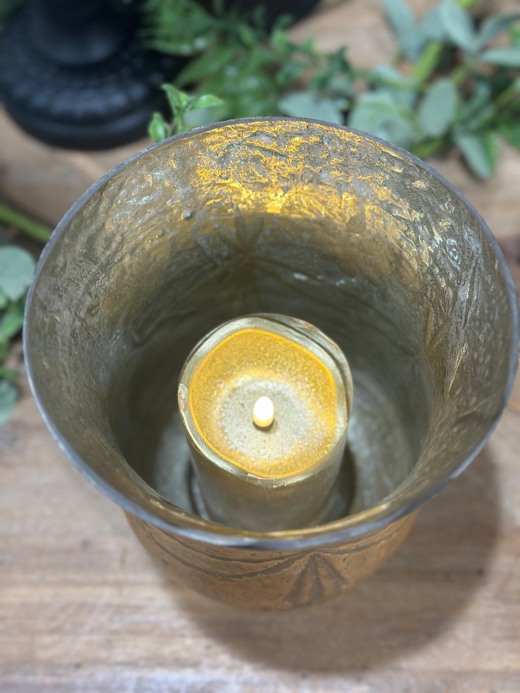 8" Antique Bronze Etched Pattern Hurricane Candle Holder