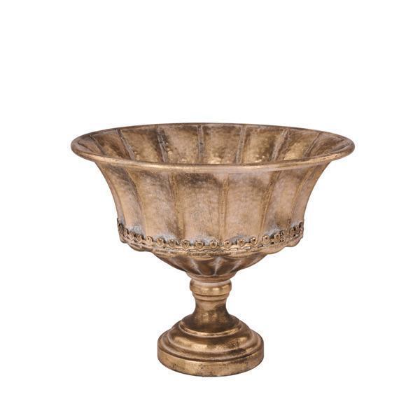 Introducing our Antique Gold Compote - a classic table decor that exudes sophistication and elegance. Crafted with an exquisite antique gold finish, this 13" Diameter x 11" Height compote will elevate any space with its timeless charm. Indulge in the luxury of this premium piece that adds a touch of art to your home.