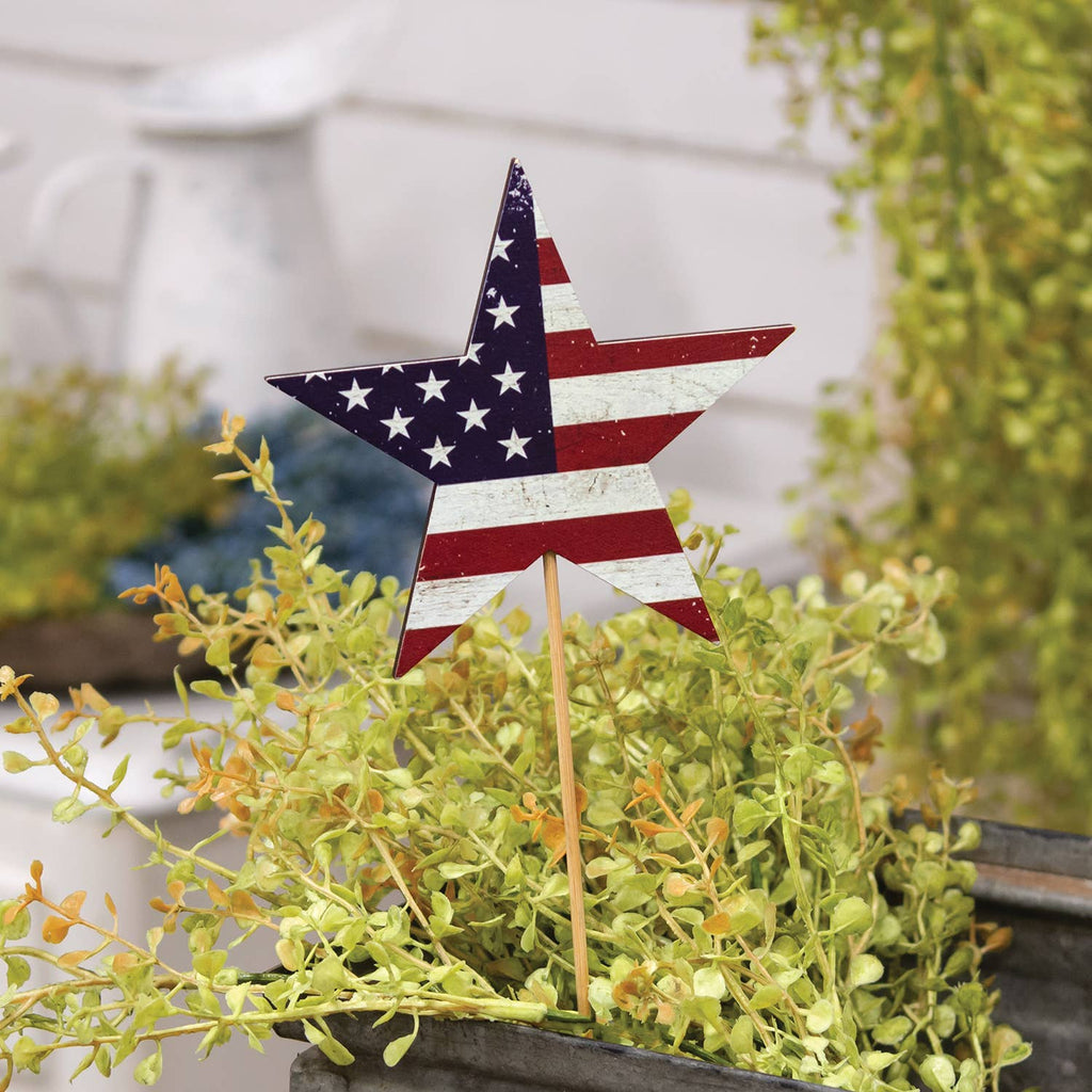 This 13.3" Antiqued USA Flag Star Pick brings a charming, rustic Americana vibe to your summer celebrations—perfect for Memorial Day, the Fourth of July, or simply showing patriotic pride in a timeless, artful way.