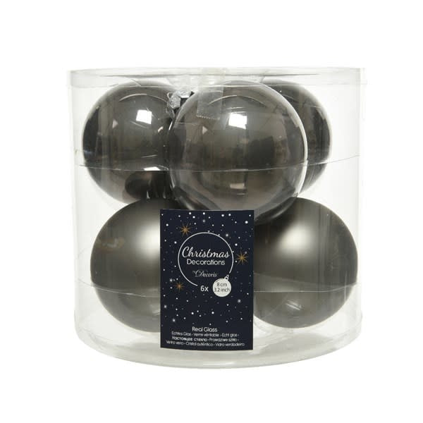 Complete your holiday décor with this set of 6 3.2” Warm Grey Glass Baubles. Made with high-quality glass, these elegant ornaments add a touch of sophistication to any tree or holiday display. Don't settle for ordinary decorations - elevate your space with these stunning baubles.