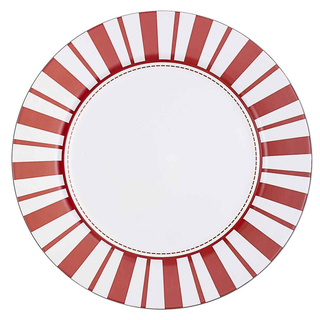 Indulge in a touch of holiday magic with our 13" Red & White Candy Cane Stripe Charger. The festive red and white striped edge adds a touch of Christmas cheer to any table, while the peppermint-inspired design exudes luxury and sophistication. Elevate your dining experience with this exclusive and elegant charger.