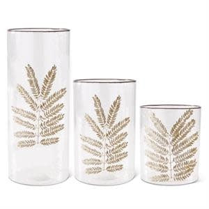 12” Clear Textured Glass Cylinders with Dried Leaf