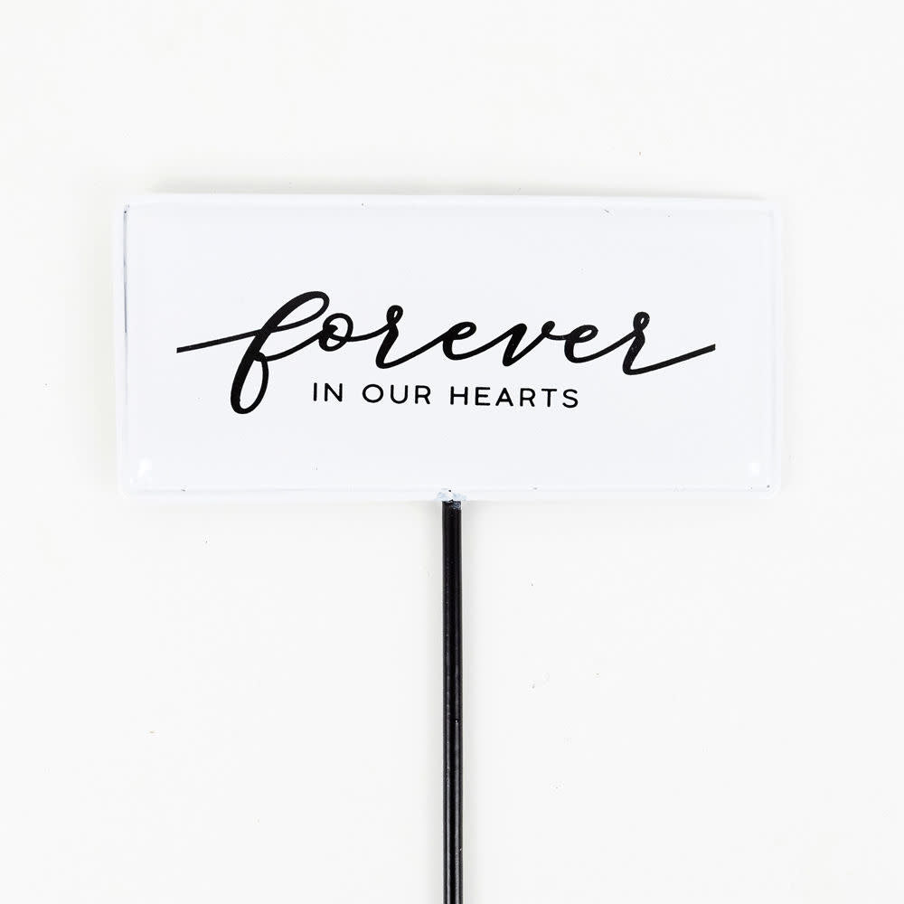 Add an elegant touch to your garden or flower arrangement with the Forever In Our Hearts Pick. Made of high-quality metal, this decorative sign exudes sophistication and refinement. A beautiful reminder of cherished memories, it will be a timeless addition to your outdoor space.