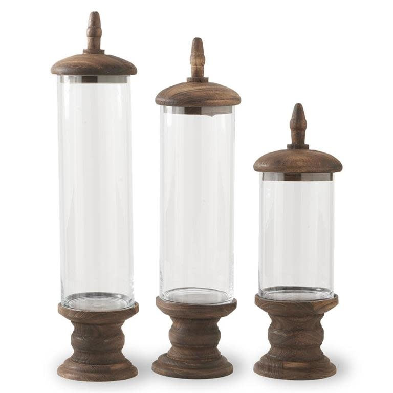 Glass Cylinder Container with Brown Wood Base Tall
