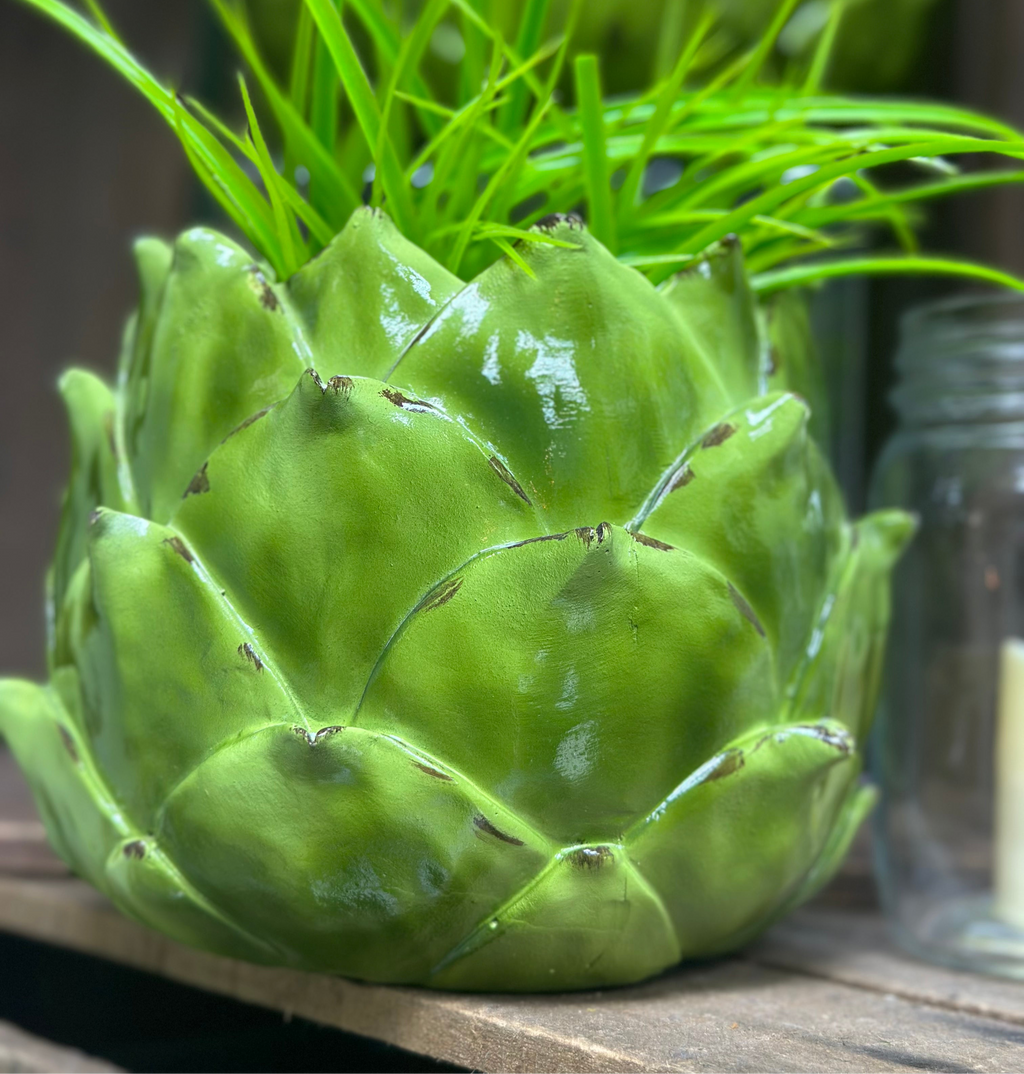 Introduce a touch of art and elegance to your home with our Green Resin Artichoke Planter Small. Crafted with premium materials, this planter is both functional and visually stunning. Elevate your interior decor with this unique piece that adds sophistication and style to any room.