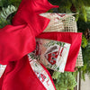 Rustic charm meets refined style in the Hearthside Holiday bow. This 18" x 22" design blends bold red satin, whimsical winter cottage ribbon, and a touch of gold mesh burlap for cozy texture. It’s the perfect piece to carry your décor through Christmas and into winter, evoking the warmth of fireside gatherings and snowy evenings at home. Beautiful on wreaths, lanterns, or as a statement on stair rails.