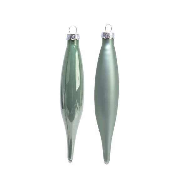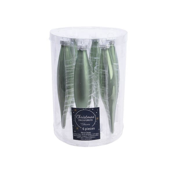 Add a touch of elegance to your holiday decor with this set of 6 sage green glass icicle ornaments. Measuring 5.2 inches, these ornaments will add a pop of color and sparkle to your tree. Perfect for any style of tree, these ornaments will make a statement and bring joy to your holiday celebrations.