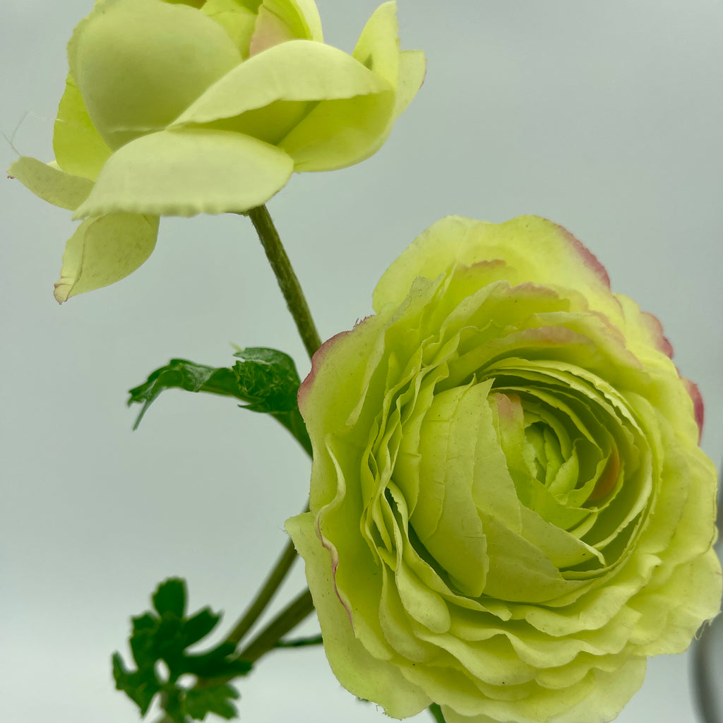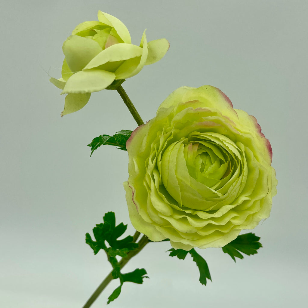 Get your hands on this stunning 23" Just Cut Ranunculus Bloom & Bud with lifelike greenery. With real touch technology, its unique green ranunculus buds will add a touch of nature to your home. Expertly crafted for a realistic appearance.