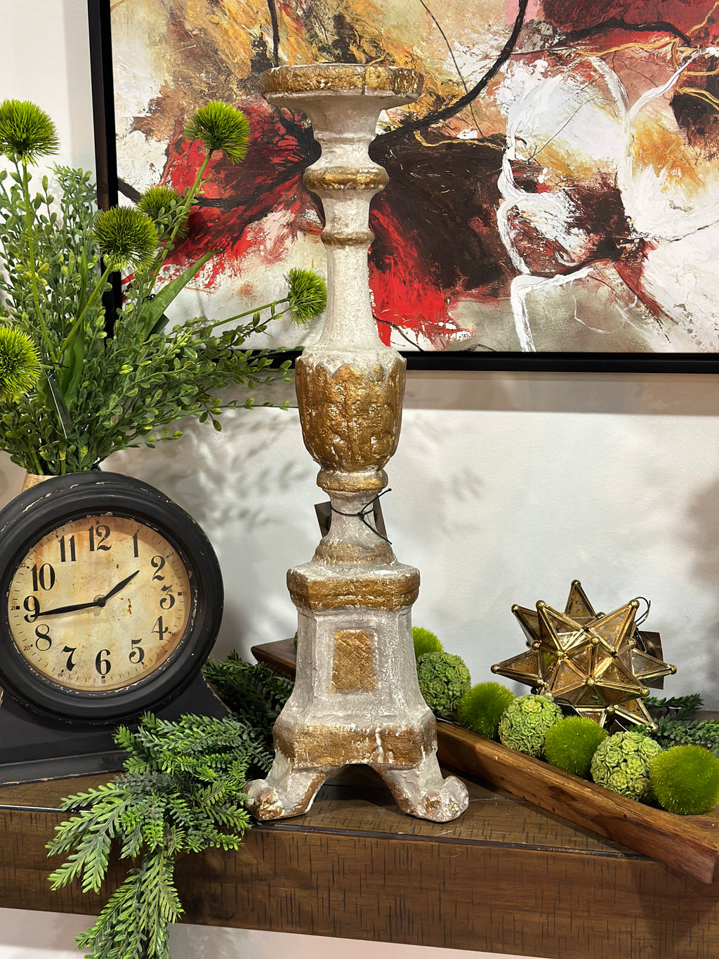 Experience the timeless beauty of our 27" Old World Candlestick. Inspired by classic design, this candlestick adds an elegant touch to any space. With its intricate details and stately height, it makes a stunning centerpiece or accent piece for your home. Create a warm and inviting atmosphere with this stunning piece.