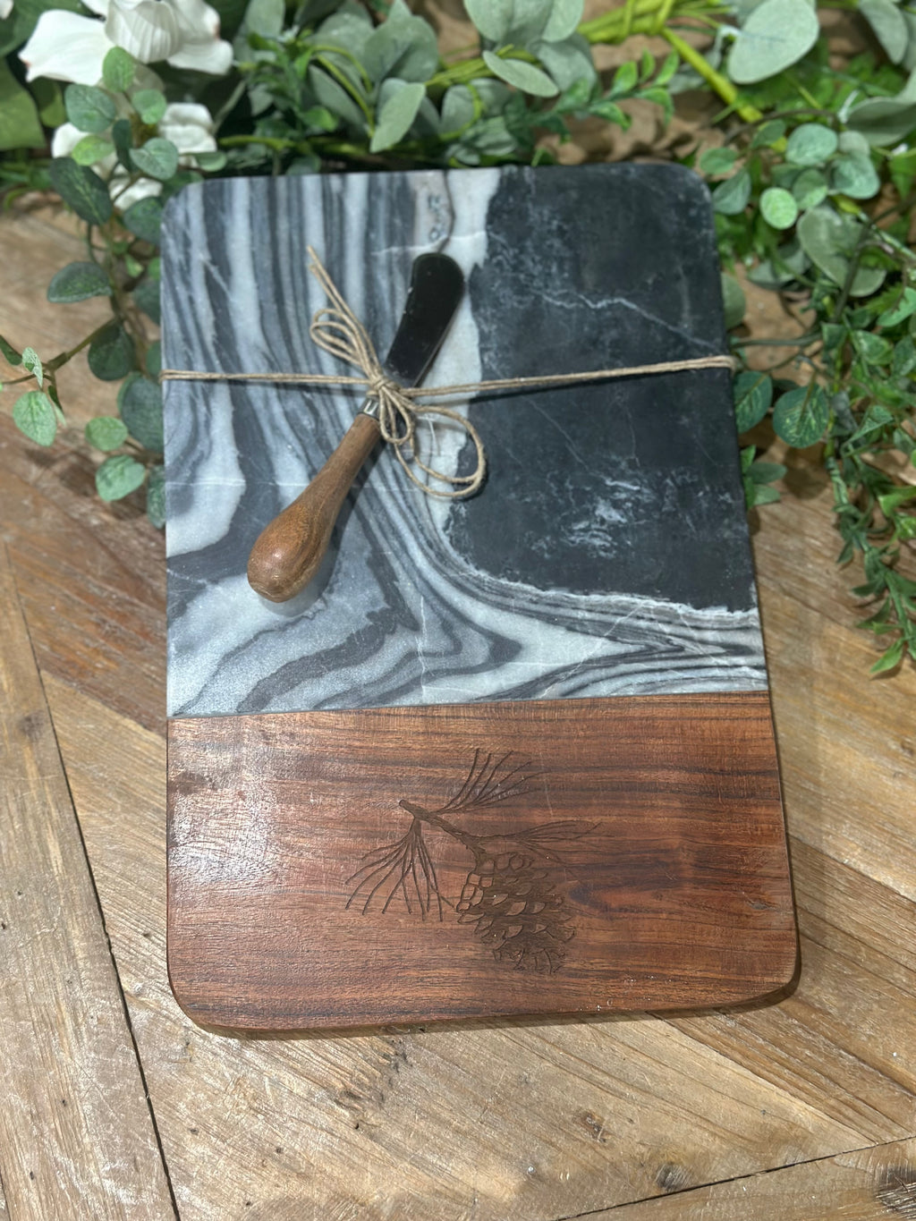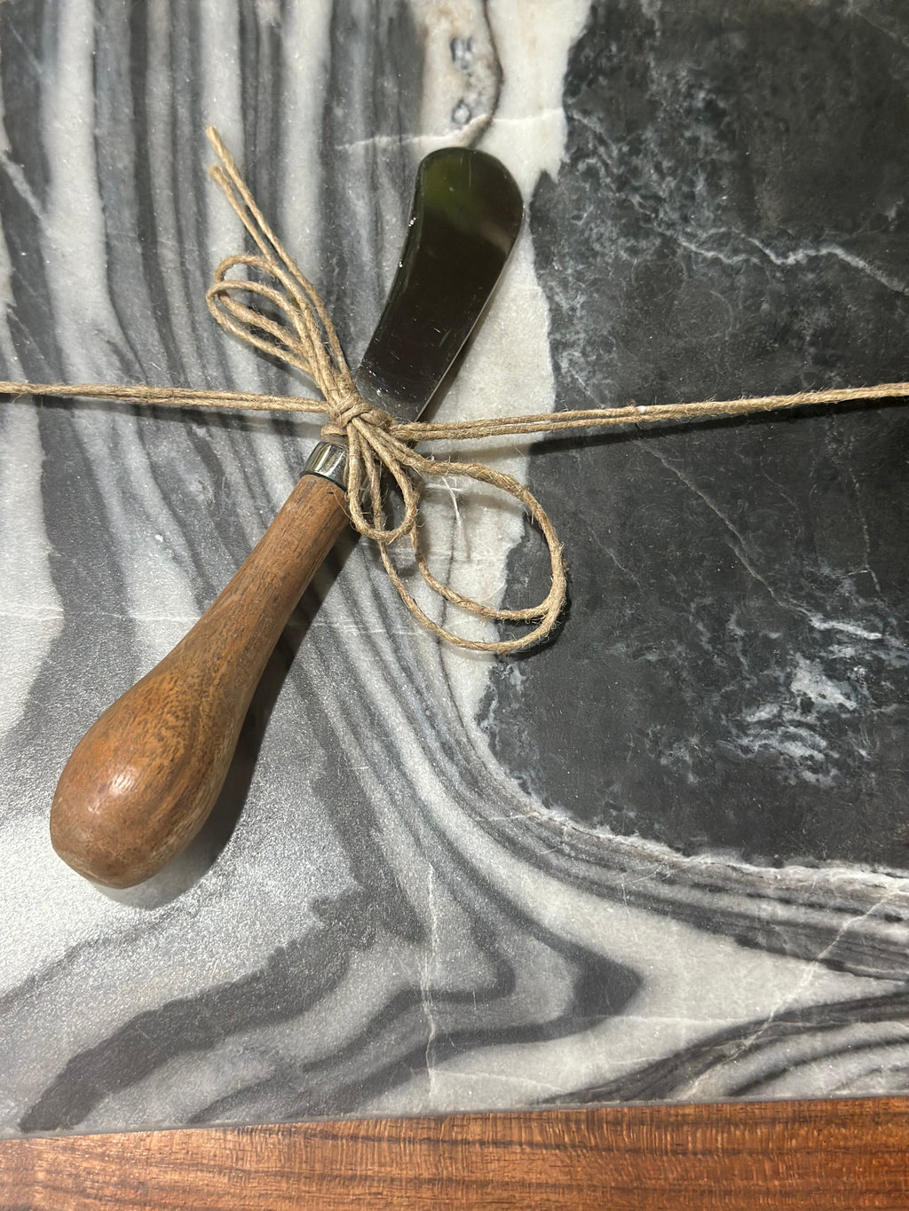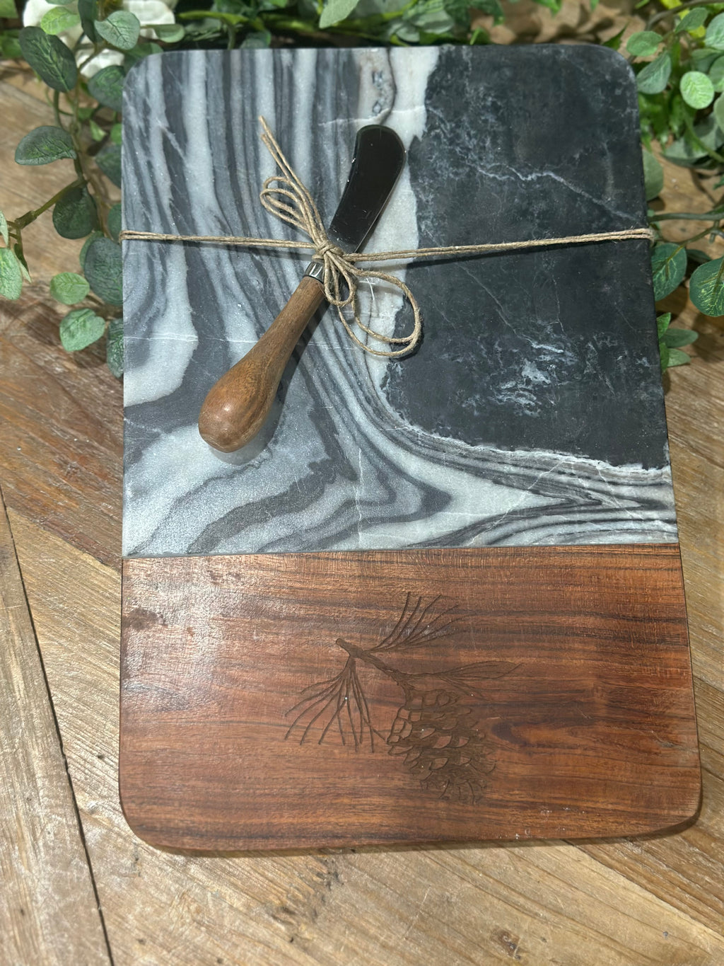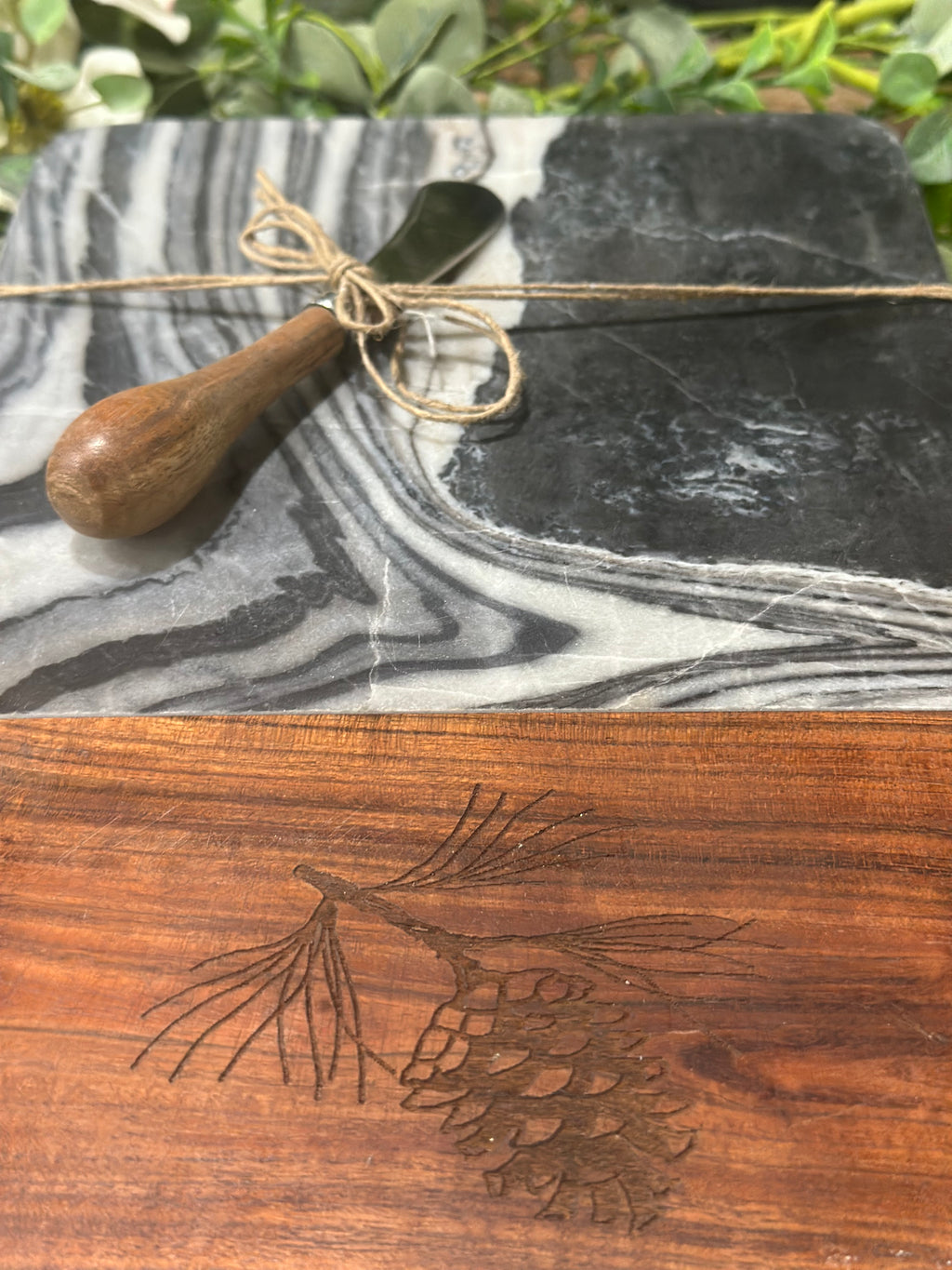 This Rustic Pine Cutting Board with Spreader is expertly crafted with a beautifully unique design. Constructed from high-quality pine, it offers a durable and stylish surface for all your cutting needs. The included spreader is perfect for serving up delicious spreads and dips. Add a touch of rustic charm to your kitchen with this essential set.