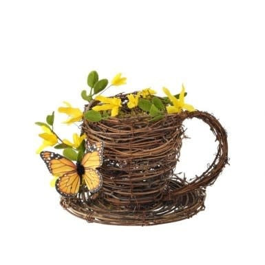 TWIG TEACUP W BUTTERFLY & FORSYTHIA ACCENT 6"