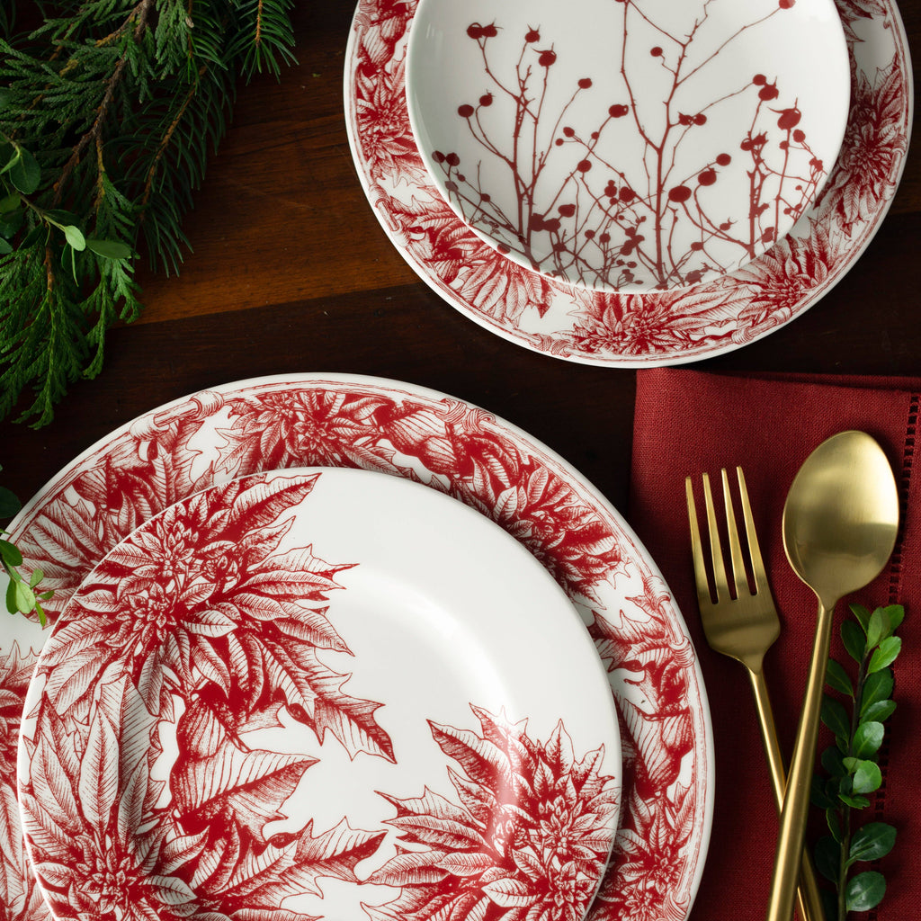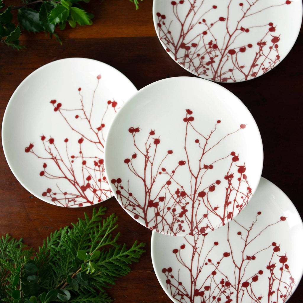 Red berries and branches hint at the season's natural beauty in these premium porcelain canapés bringing a modern aesthetic for the holidays or any day.